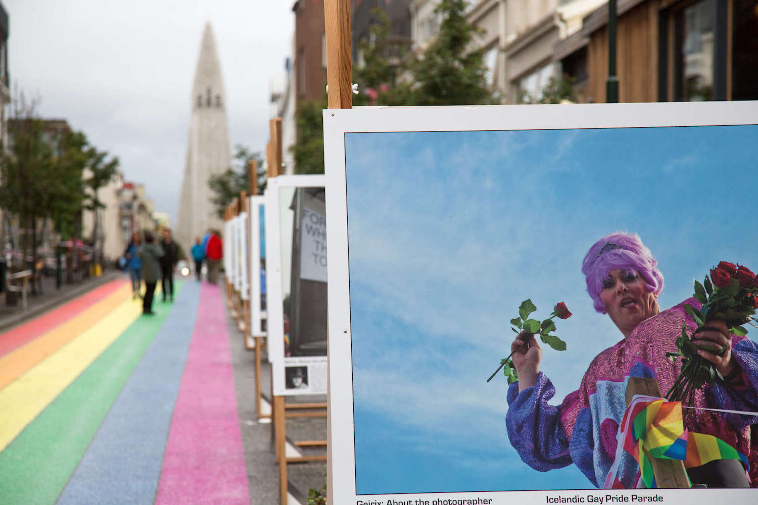 Iceland Gay Pride Parade, im Hintergrund die Hallgrimskirche