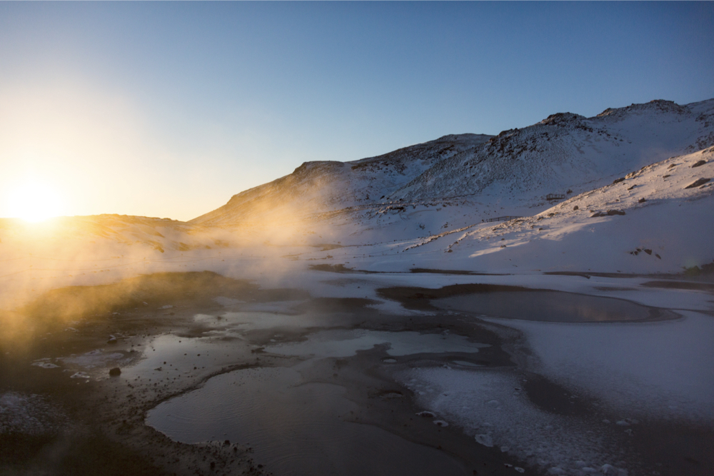 Schwefelfelder im Gegenlicht
